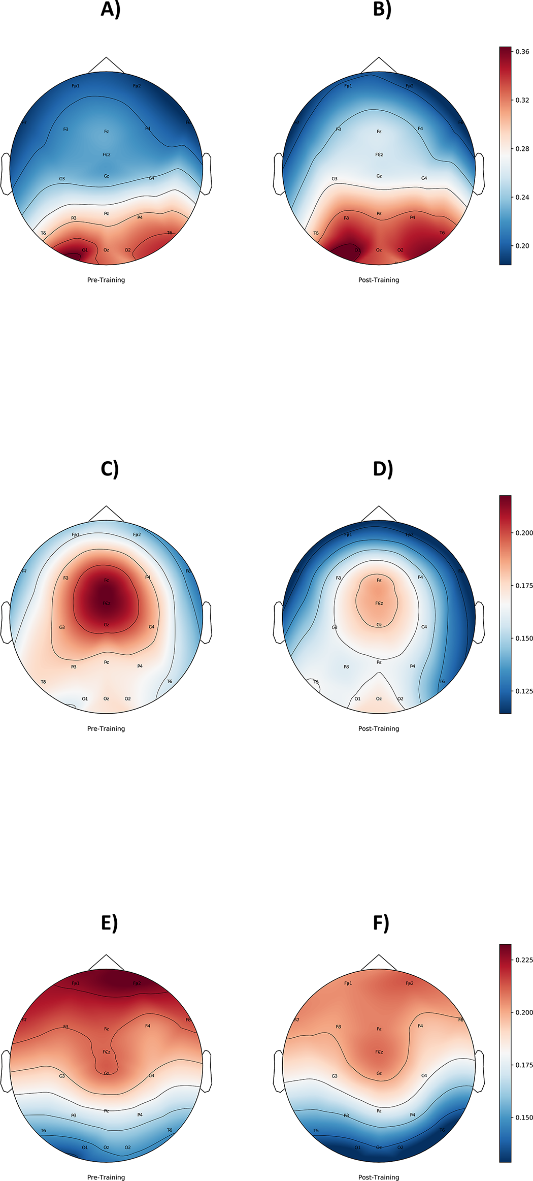 3.1.2 Pre-post measures: Changes in resting state EEG (t2-t1).